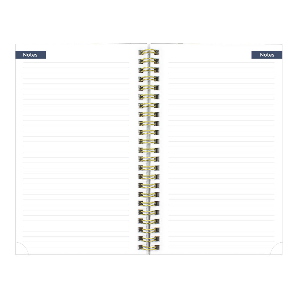 The versatile Blueline® Essential Academic Weekly/Monthly Planner spans 13 months (July 2026–July 2027), featuring a ruled week-on-two-pages layout, a monthly planner at the start of each month, and dedicated space for every day. Key features include reference calendars for the current and next month, numbered weeks, countdown of passed/future days (Julian dates), holidays, moon phases, a notes section, and tear-off corners for quick navigation. Gold twin-wire binding secures the durable, poly fashion cover, which folds back flat for a sturdy writing surface. Additional tools include a quarterly planner, event calendar, contact information section (phone number/address/email/birthday), password log, to-do list, note pages, a three-year overview, and colorful reminder stickers. Size: 8" x 5", English. Made with 100% post-consumer recycled paper, FSC® certified (FSC® C102682). Made in Canada.