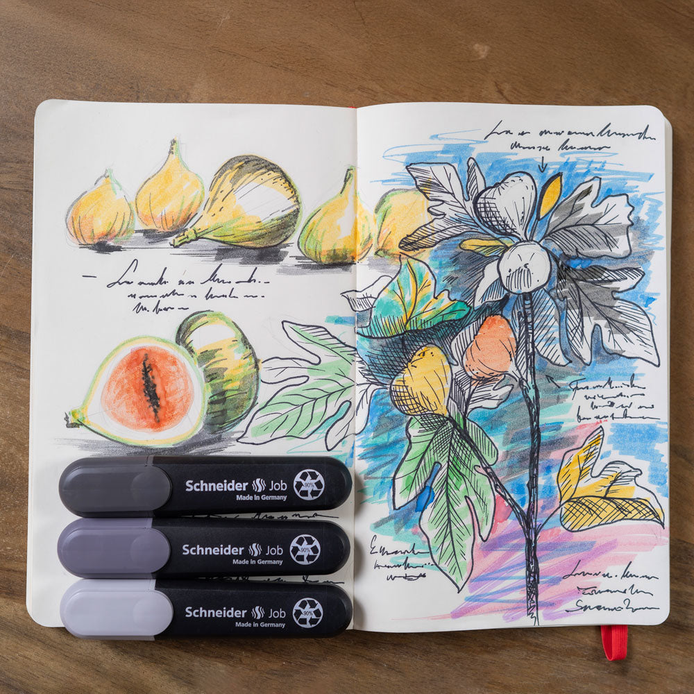 The Highlighter Job is characterized by its bio-based ink, which is particularly environmentally friendly. The ink formulas contain a high proportion of natural raw materials that harmonize perfectly to ensure outstanding ink quality. The ink is odorless, quick-drying, washable, and lightfast.