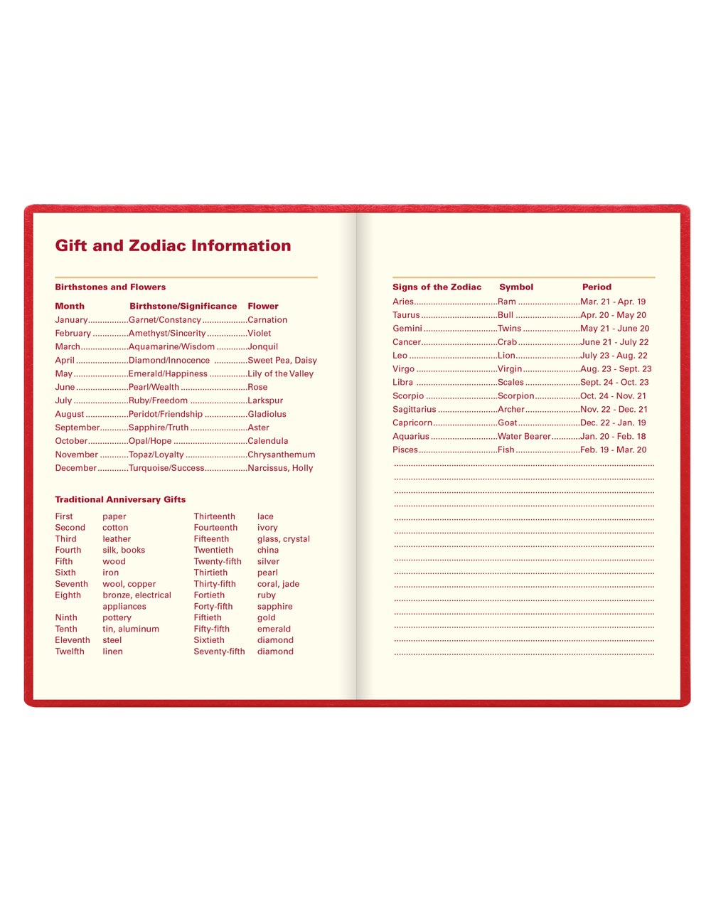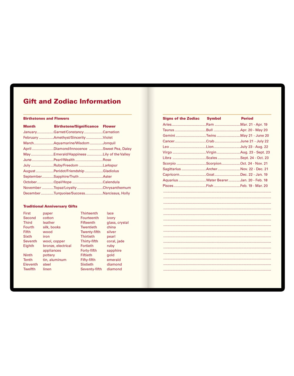 • gift and Zodiac information